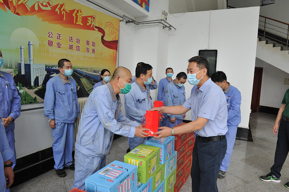 7月9日下昼,,,,,,,清洁能源党委书记、总司理张凤阳,,,,,,,党委副书记、工会主席杨会先代表公司党委、工会到所属企业慰问一线职工。。。